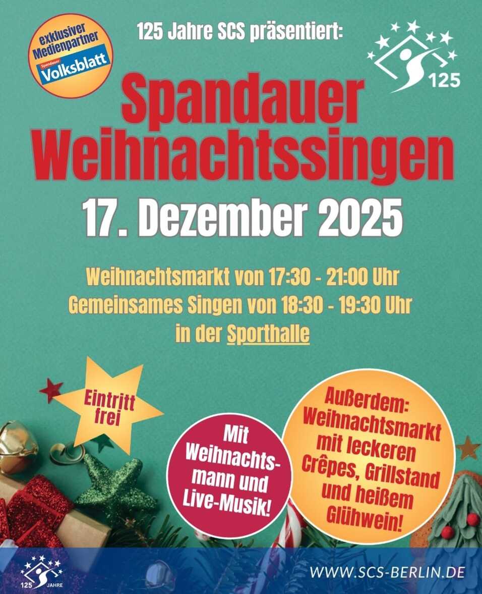 Am Mittwoch, den 17. Dezember 2025, sind wir als Rugby-Abteilung natürlich mit dabei, wenn beim SCS Berlin das große Weihnachtssingen stattfindet!