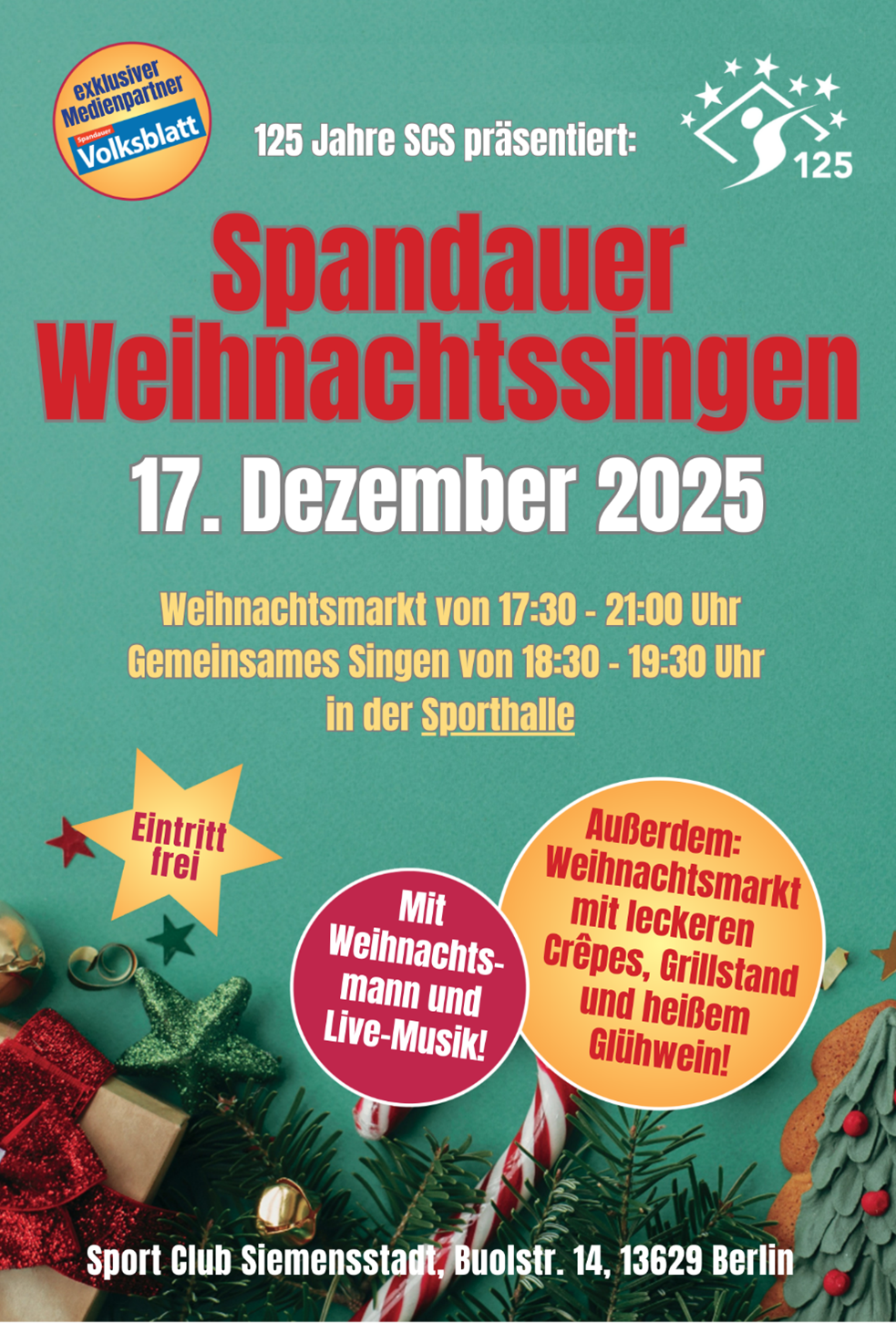 Der Sport Club Siemensstadt lädt zum großen Weihnachts-Mitsing-Event in Halle und Stadion