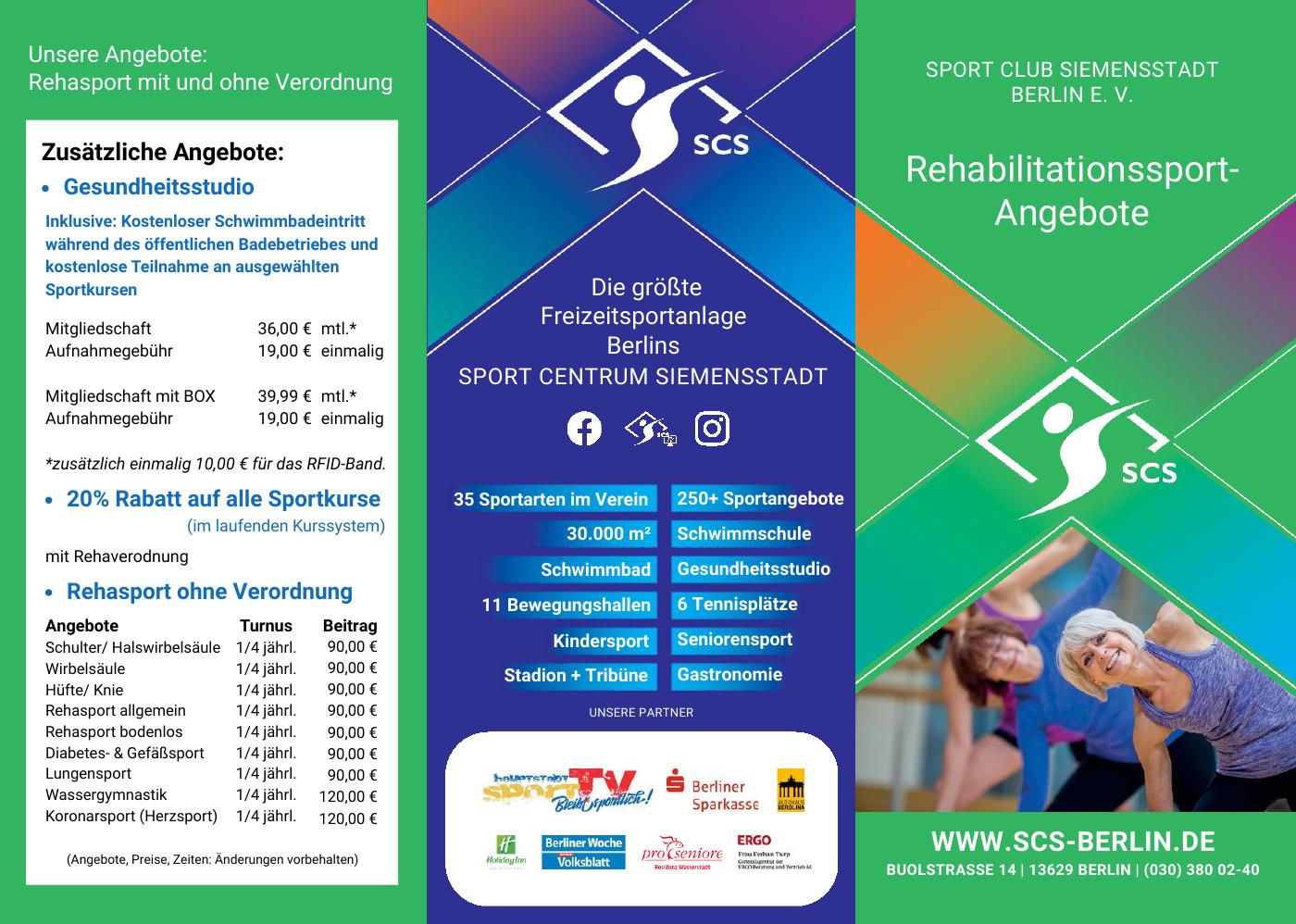 Hinweis: Absagen bitte ausschließlich per E-Mail an rehasport@scs-berlin.de. Bitte sehen Sie von telefonischen Absagen ab!