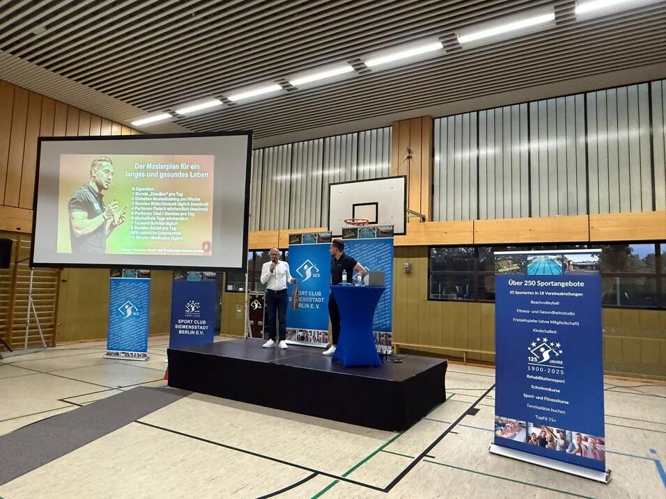 Am Dienstag, den 09.09.2025, war es endlich so weit: Zahlreiche interessierte Gäste versammelten sich in der Turnhalle unseres Sport Centrums in der Buolstraße, um den Vortrag „Der Masterplan für ein langes und gesundes Leben“ zu erleben. Referent war kein Geringerer als der renommierte Sport- und Ernährungswissenschaftler Robert Pannicke, der uns mit seiner Expertise, seinem praxisnahen Wissen und seiner inspirierenden Art einen unvergesslichen Abend bescherte.