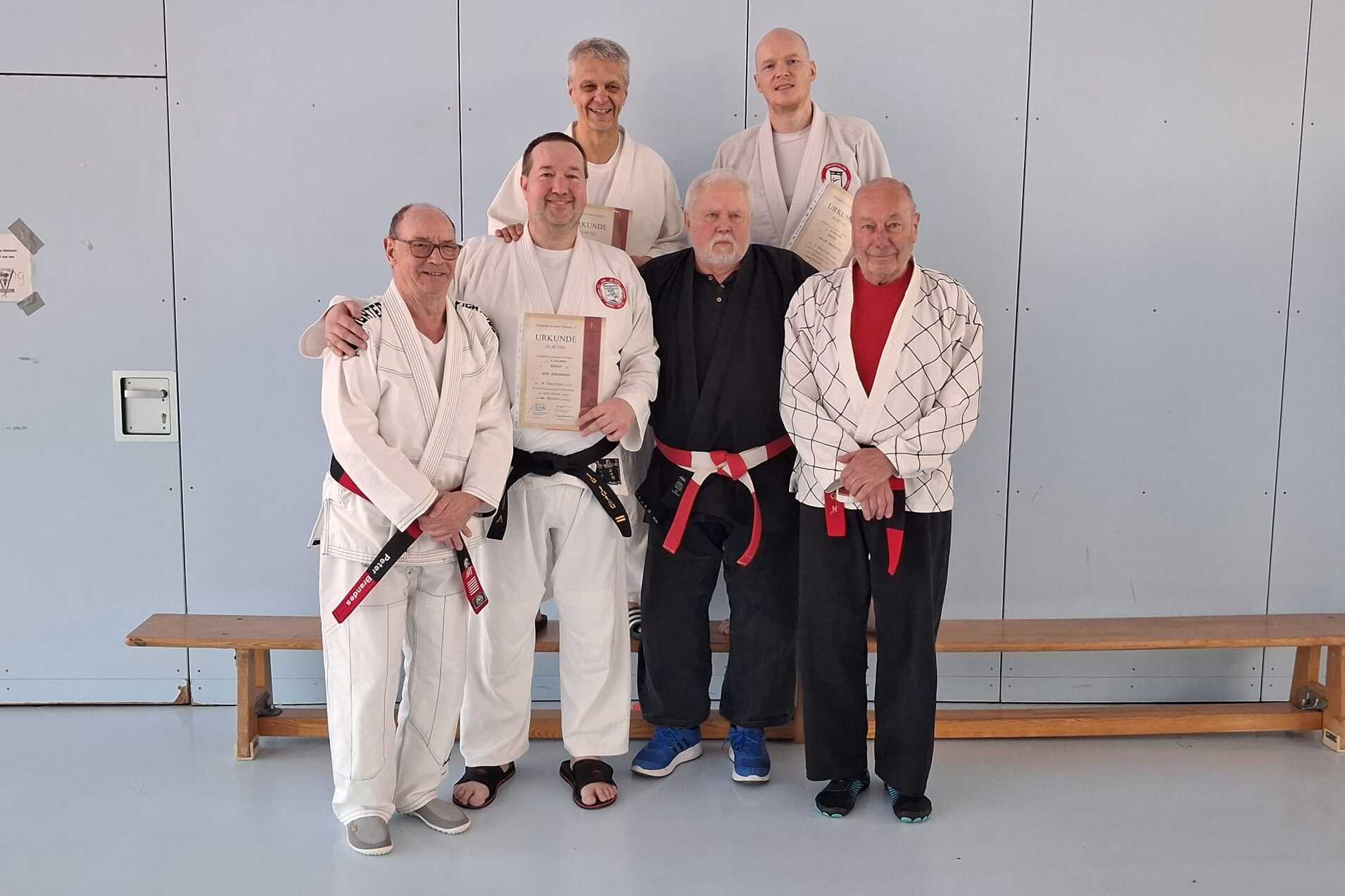 Am Samstag, dem 21. März 2026, fand eine Gürtelprüfung beim Berliner Ju-Jutsu-Verband statt, bei der auch drei von unseren Vereinsmitgliedern teilnahmen. Über eine erfolgreich bestandene Prüfung freuten sich Philipp (1. Dan), Olli (2. Dan) und Jens (3. Dan). Herzlichen Glückwunsch an alle drei für diese großartige Leistung!