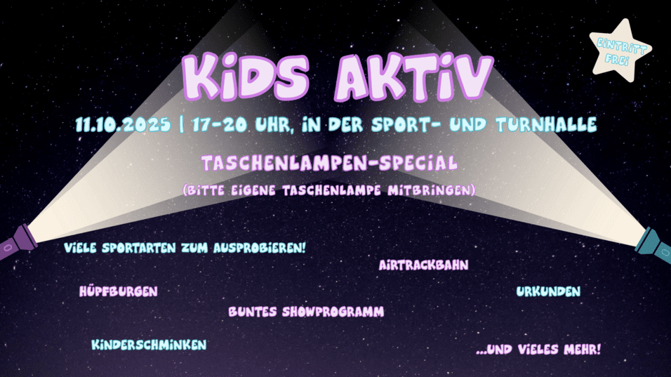 Im Rahmen der 15. Familiennacht am 11. Oktober 2025 findet unser bekanntes KidsAKTIV statt. Diesmal als einmaliges Taschenlampen-Special.