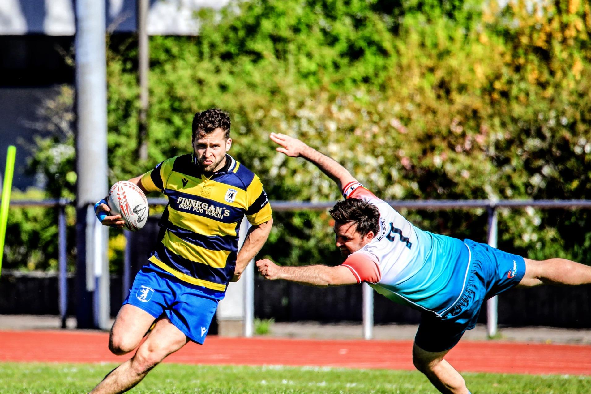 Die Erwartungen nach einer guten Trainingswoche mit vollem Spielkader waren bei bestem Frühlingswetter hoch und so strömten knapp 200 Besucher.innen in den Rugby-Hexenkessel beim SCS. Und nicht nur die Kombi Babu-Spicy am Grill, sondern auch die Blau-Gelben auf dem Platz gingen engagiert in die Partie und konnten durch eine schöne Kombination durch Olly zum ersten Try einlaufen. Irish antwortete zwar prompt, aber man konnte merken, dass auch der SCS heute gewillt war, den Cup nach Siemensstadt zu holen. Nach Melles Durchbruch und Thibauts Erhöhung stand es 14-5.