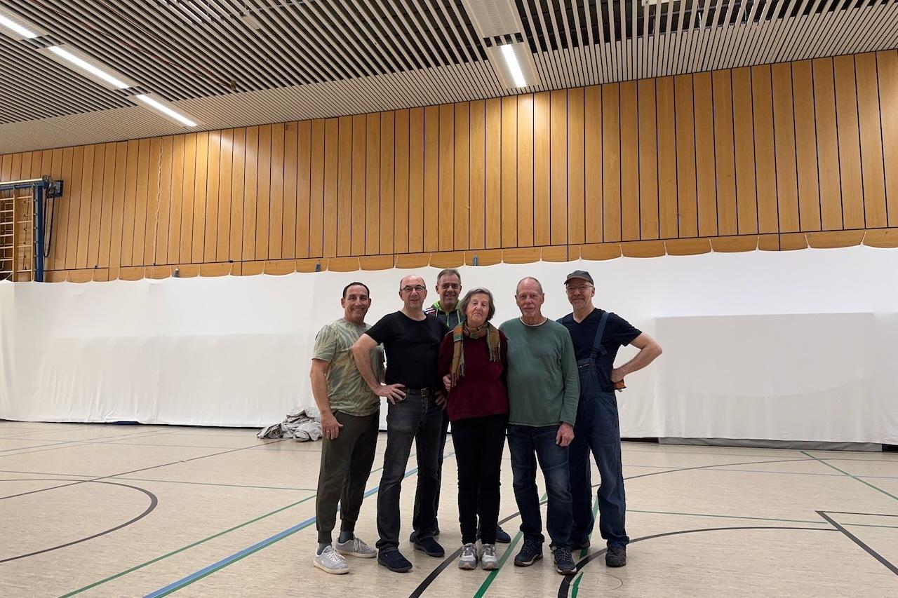 Tatkräftige Unterstützung durch unsere Abteilung Tango Argentino für die Abendfeier des RBB Turniers: In nur 5,5 Stunden verwandelte das sechsköpfige Aufbauteam die Turnhalle in einen festlichen Saal: Abgehängte Wände, Teppiche auf dem Boden, 17 Biertische, 136 Stühle, Parkett sowie Musik- und Lichttechnik sorgten für eine besondere Atmosphäre.