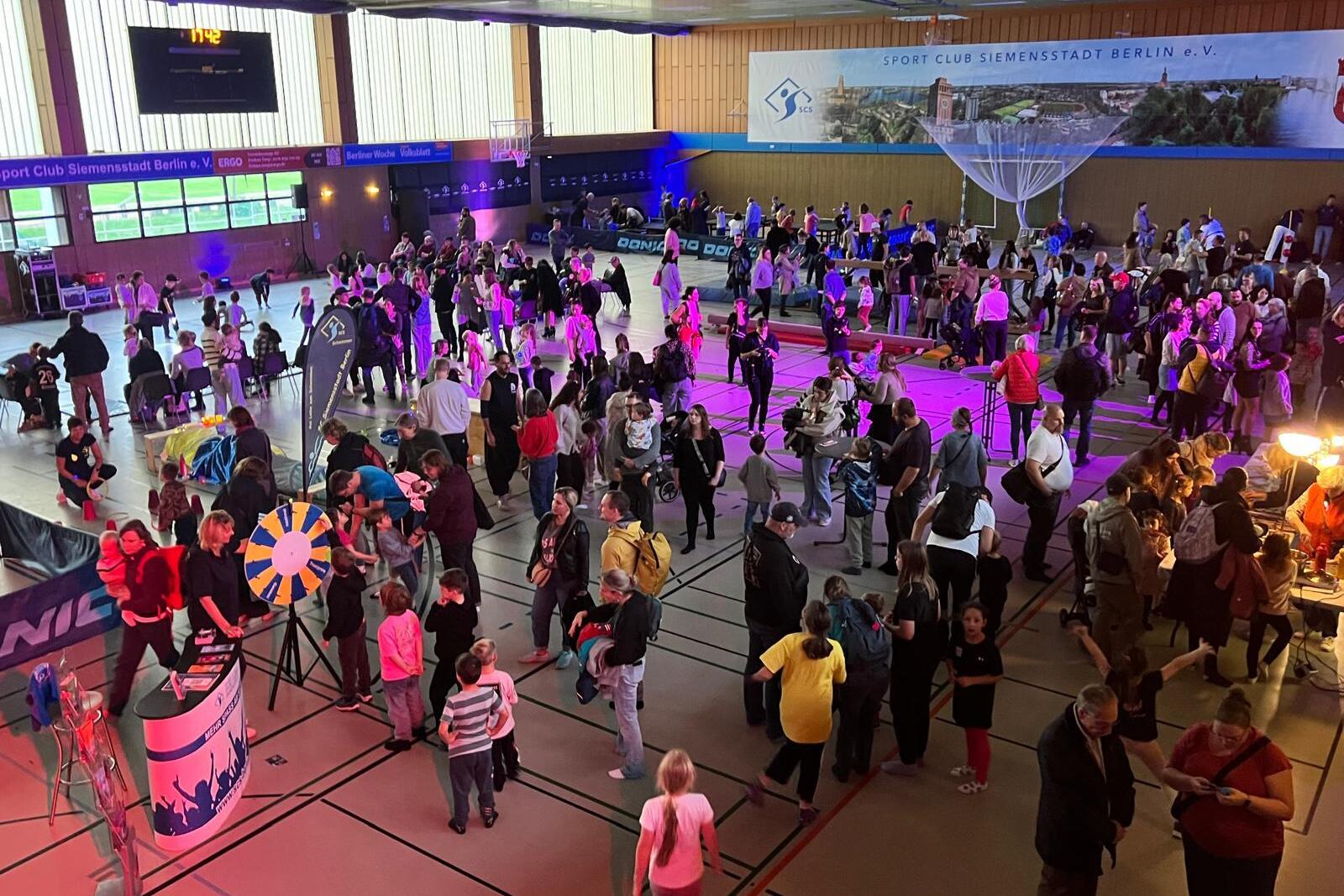 Ab 17:00 Uhr verwandelten sich die Hallen in eine lebendige Erlebniswelt voller Bewegung und Entdeckungen. Gemeinsam mit zahlreichen Kindern und ihren Familien erlebten wir einen bewegten und stimmungsvollen Abend voller Action und Spaß. Die kleinen Besucher konnten sich an einer Vielzahl von Sport- und Spielstationen ausprobieren: Hüpfburgen, eine Airtrackbahn zum Toben, Kinderschminken, ein großes Kletter- und Spieleparadies sowie ein buntes Showprogramm auf der Bühne sorgten für abwechslungsreiche Unterhaltung und viele leuchtende Momente – im wahrsten Sinne des Wortes. Die kleinen Besucher konnten sich an verschiedenen Sport- und Spielstationen ausprobieren, sich sportlich austoben und gemeinsam mit ihren Familien einen unvergesslichen Abend erleben – ganz im Sinne des diesjährigen Mottos der Familiennacht „Türen auf! Familien in Bewegung“.