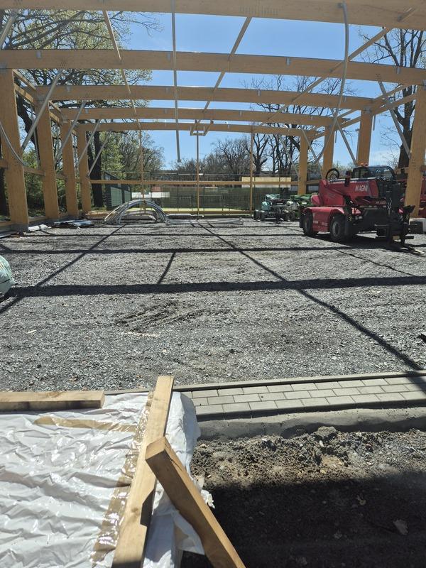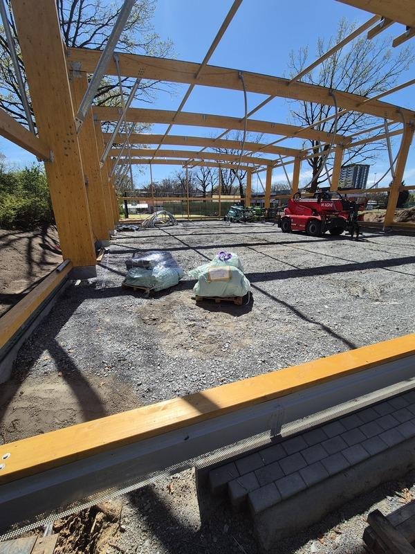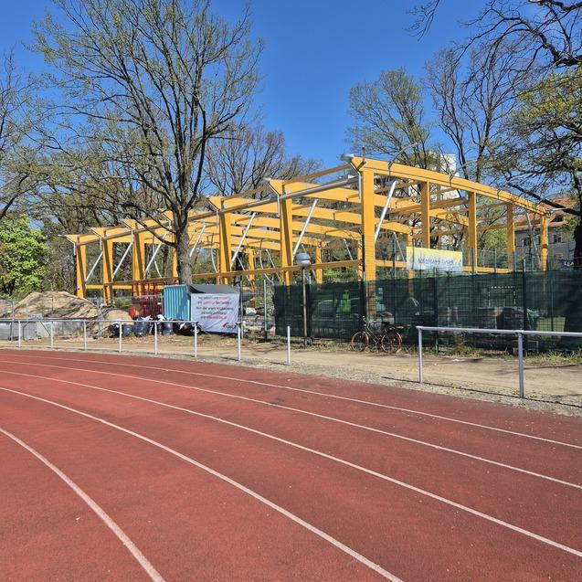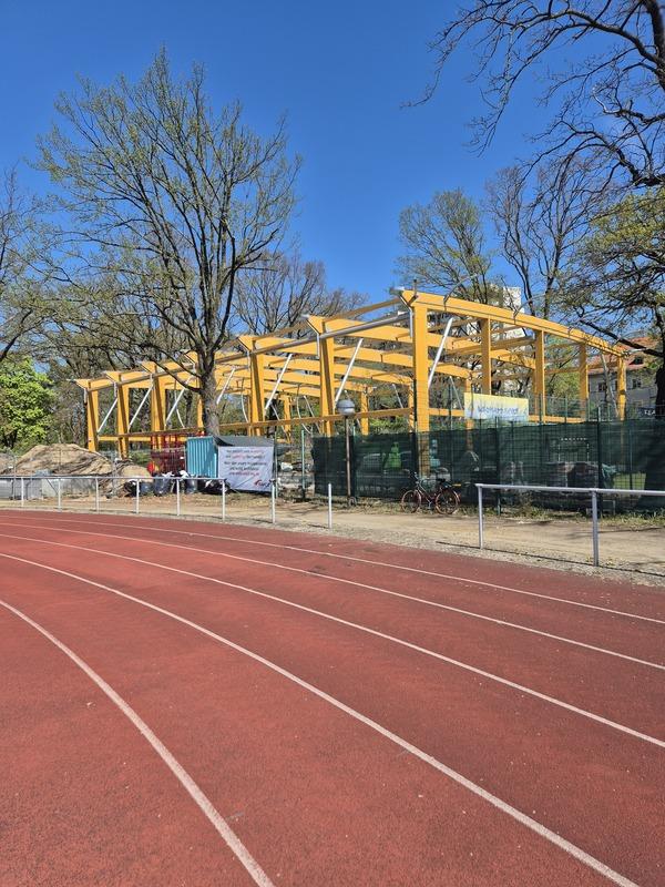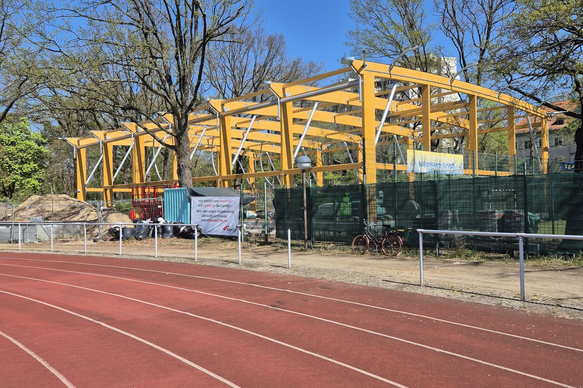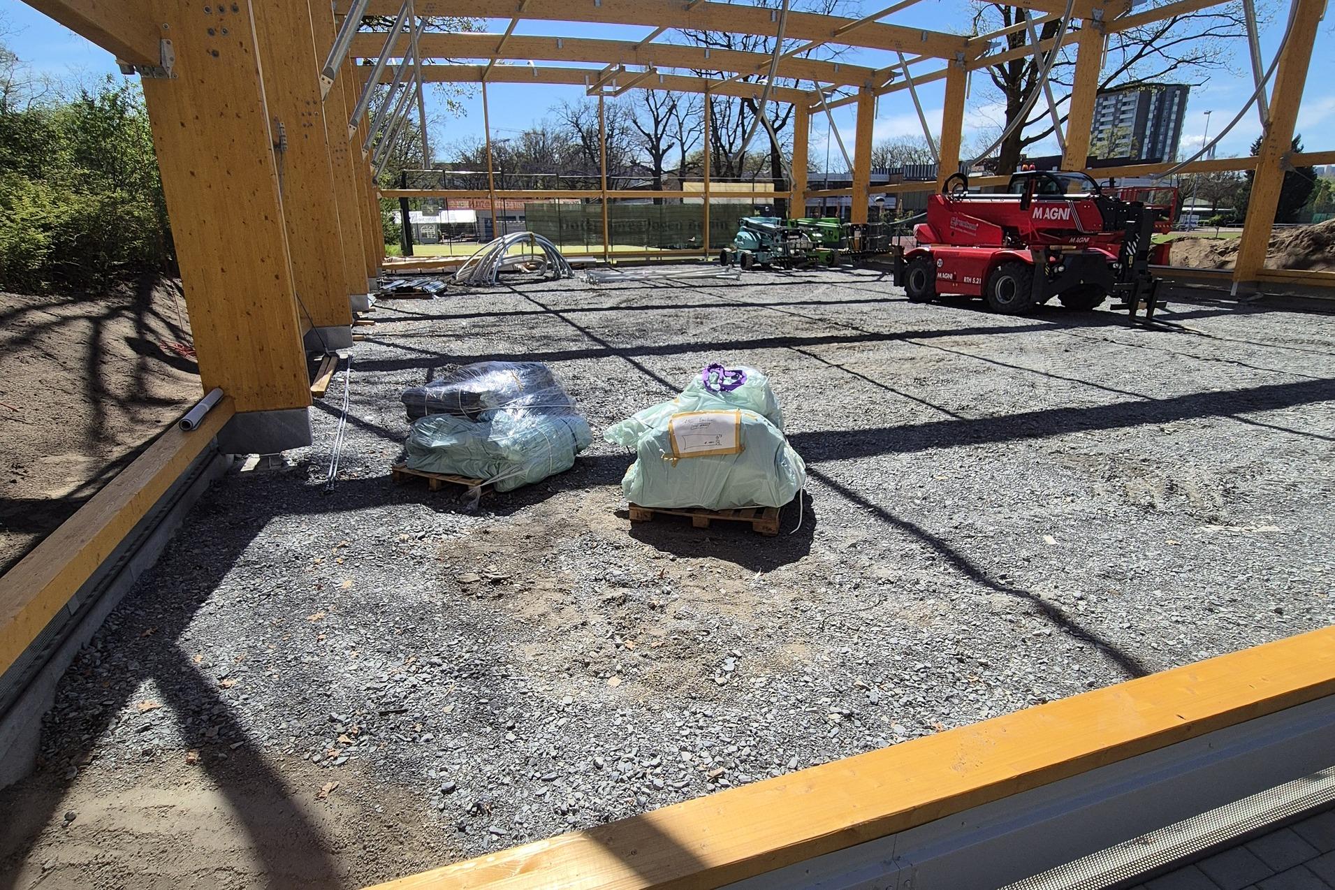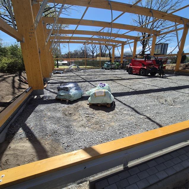 Aktuell laufen die Arbeiten am weiteren Aufbau der Konstruktion sowie die vorbereitenden Maßnahmen für das Dach. Damit wird ein wichtiger Schritt in Richtung Fertigstellung erreicht und die zukünftige Nutzung der Halle wird zunehmend erkennbar.