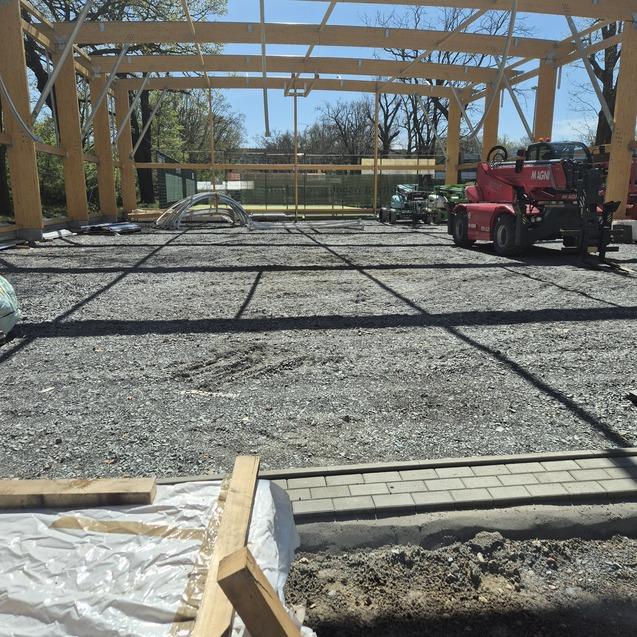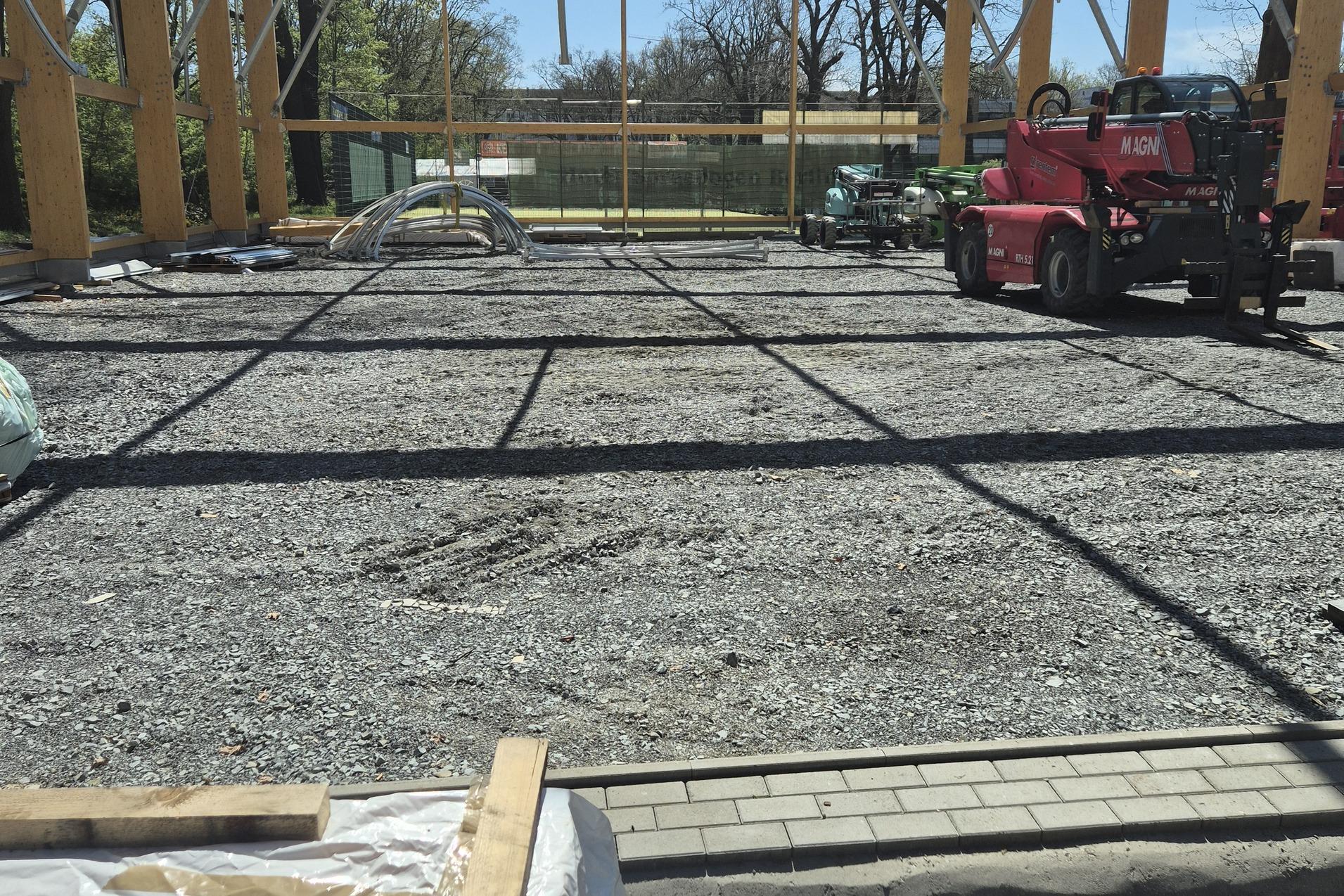 Der Bau unserer neuen Kaltlufthalle entwickelt sich weiter deutlich sichtbar: Das Grundgerüst steht bereits und die entstehende Halle nimmt auf dem ehemaligen Tennisplatz immer klarere Formen an.