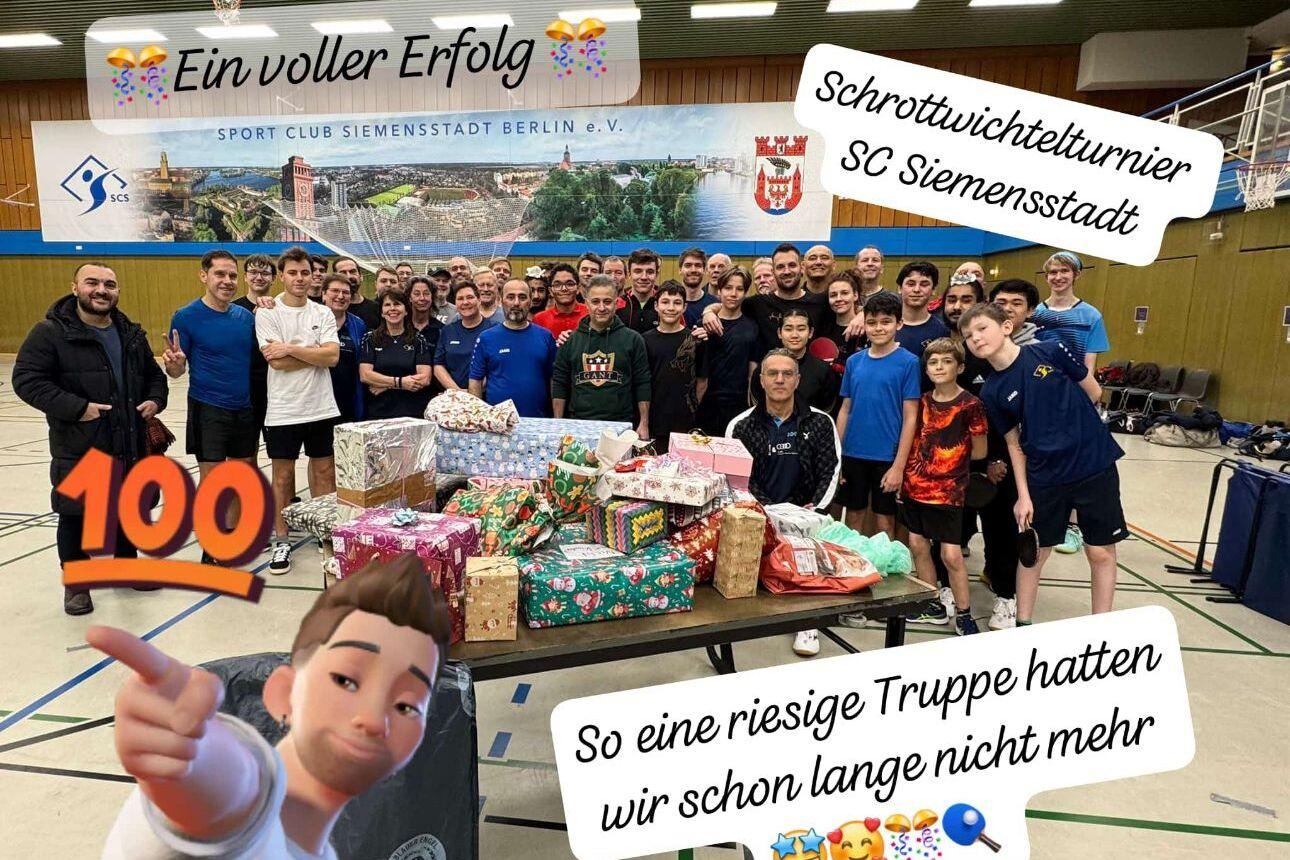 Zum Jahresauftakt trafen sich 53 Schrottwichtel zur 9. Auflage des traditionellen TT-Turniers. Nach 286 3 - Satz Partien an 24 Tischen in 3 Stunden Gesamtspielzeit, durfte sich Daniel Flohe als Turniersieger seinen Preis vom Schrottwichtelgabentisch wählen. Herzlichen Glückwunsch an alle Platzierten und ein erfolgreiches 2026 wünscht euch die TT Abteilung!