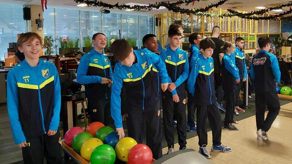 Der letzte Aufgalopp der Mannschaft, die in einer bärenstarken Liga bisher nur zweimal als Verlierer vom Feld ging, fand auf der Motawi-Bowlingbahn im Märkischen Viertel statt. Eine gute Gelegenheit, um auch mal abseits des Fußballs den Teamgeist zu pflegen - und den Sponsor mit in Szene zu setzen.