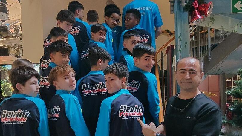 Der Dank des Teams geht an Gürsel Sevim, Manager der Fahrschule Sevim, der die Anzüge an die Jungs und das Mäddel in der Mannschaft überreichte.