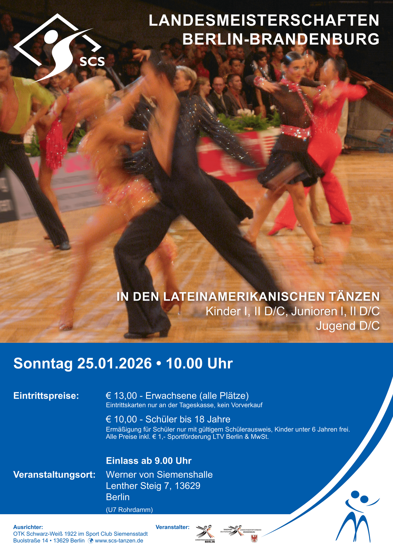 Es ist wieder so weit – die besten Paare des Landes treten gegeneinander an - Seien Sie dabei – bei der Landesmeisterschaft in den lateinamerikanischen Tänzen der Kinder I,II D/C, Junioren I,II D/C und Jugend 2026.