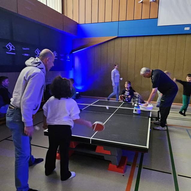 Die Tischtennisabteilung war am vergangenen Samstag wieder mit Enrique und Angie vertreten und konnte zahlreichen Kindern auf spielerische Weise unseren Sport näher bringen. Vielen Dank beiden dafür. Auch dieses Jahr waren natürlich die Mini-Tischtennis Roboter sehr beliebt…